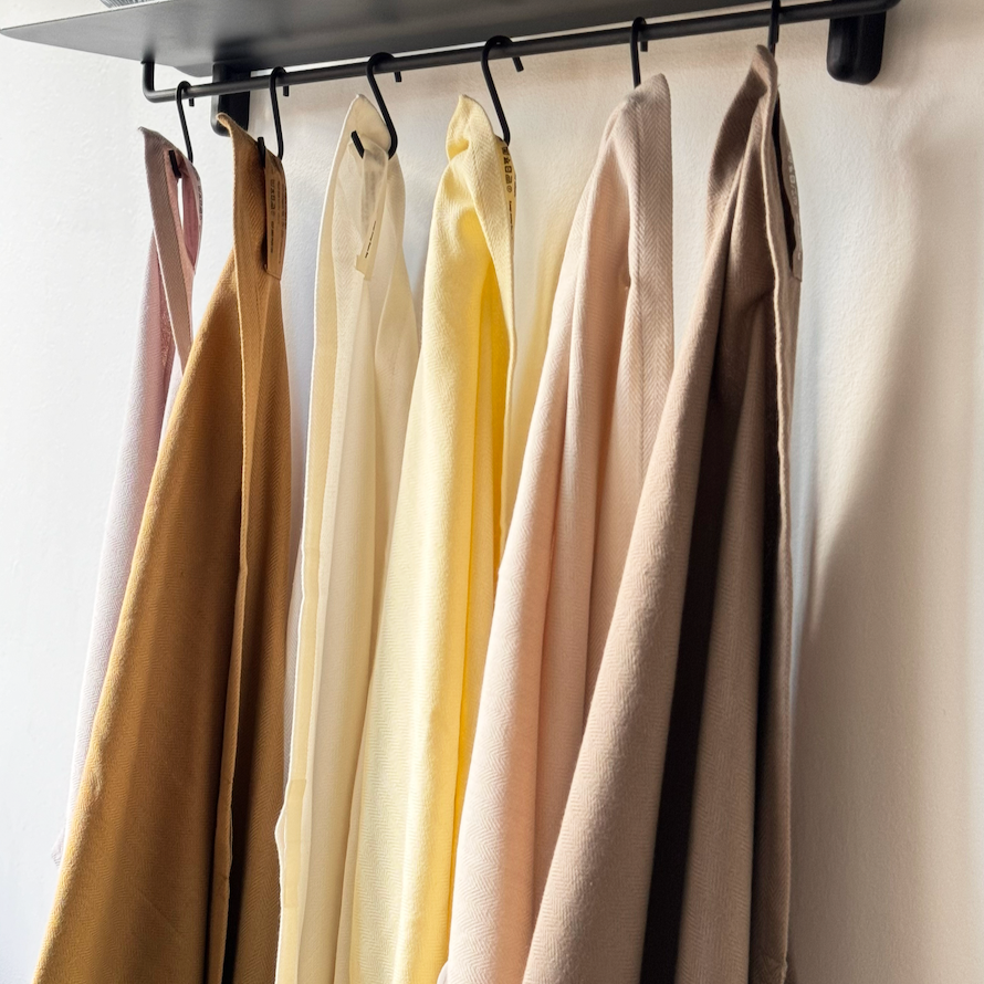 Herringbone describes a distinctive V-shaped weave pattern and resembles the skeleton of a herring fish (hence the name). Herringbone is a traditional weaving technique that has been used for centuries and is known for its shape retention, long-lastingness and its ability to absorb moisture. The weaving technique is often seen in woolen clothing such as suits and jackets, but due to the uniqueness and qualities of the weave, we find it perfect for some of our products.